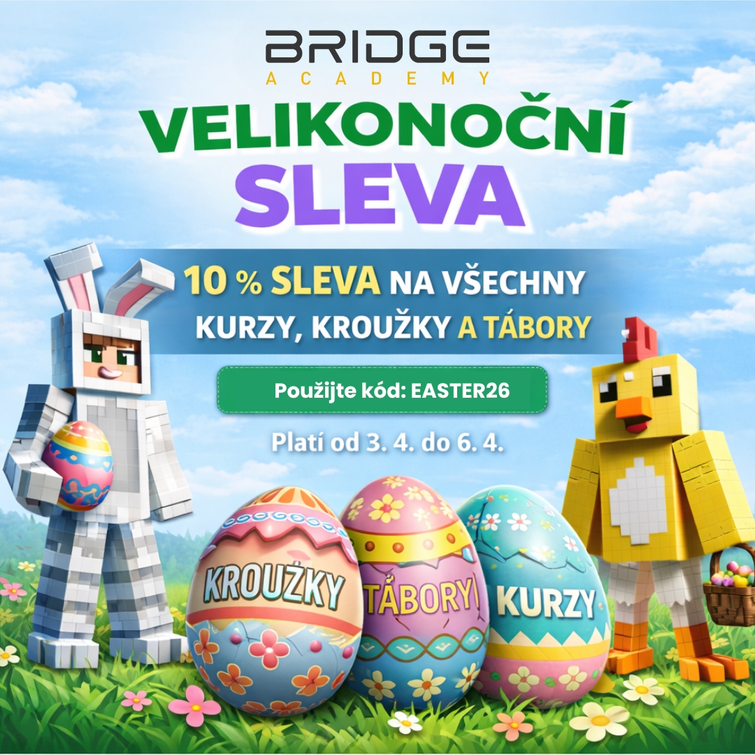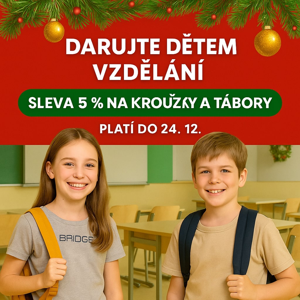 Sledujte aktuální slevy, speciální nabídky a výjimečné události Bridge Academy. Přinášíme vám jedinečné příležitosti, jak dětem dopřát smysluplné vzdělávání za výhodnou cenu. Nenechte si ujít tábory, kroužky a doučování se slevou nebo limitovanými bonusy – vše přehledně na jednom místě.
